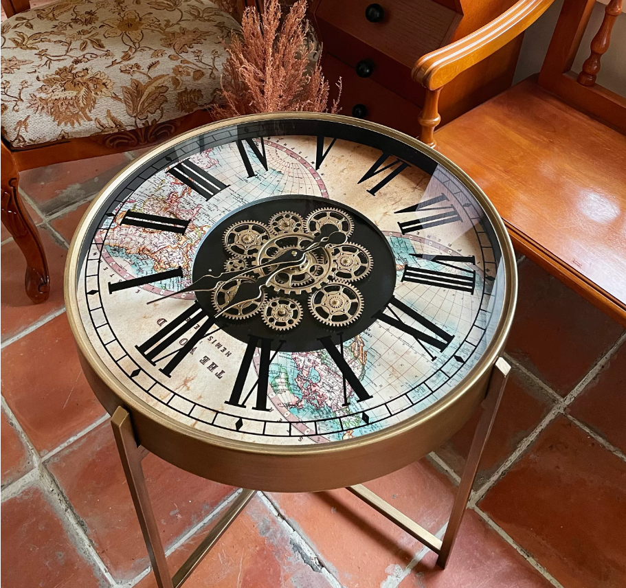 Retro clock gear small coffee table Gold distressed